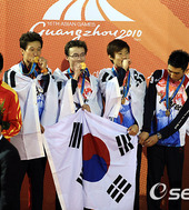 2010.11.24 22: 35[AG사진] 근대5종 남자 대표팀, "이게 바로 금맛"