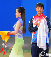 2010.11.24 17: 57[AG사진]김우진, '고교궁사도 반해버린 미녀 도우미'