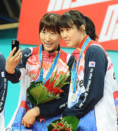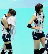 2010.11.27 18: 09[AG사진]여자배구,'아쉬운 은메달 미소'