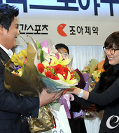 2010.12.08 12: 52김태균,'약혼녀(김석류)의 꽃다발 싱글벙글'