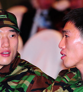 2010.12.20 14: 52김정우-최효진, '힘찬 거수경례'