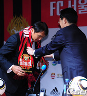 2010.12.29 15: 11황보관 감독,'FC 서울 머플러를 받으며'