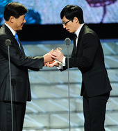 2010.12.30 01: 20유재석,'대상 수상하며 강호동과 포옹!'