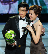 2010.12.30 01: 25유재석,'박미선과 수상의 기쁨을 나누며'