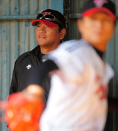 2011.02.07 17: 28심수창 불펜 피칭 바라보는 사사키