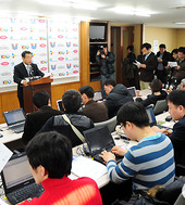 2011.02.08 11: 35이사회 결과 발표하는 이상일 사무총장