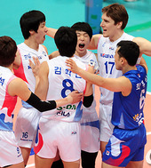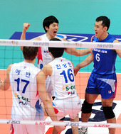 2011.02.20 15: 12환호하는 대한항공,'승리 보인다고'