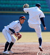 2011.03.04 15: 47김현수, '캡틴 손시헌, 유연하네'