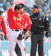 2011.03.19 13: 31박재홍,'악! 머리에 공맞았어!'