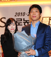 2011.03.21 11: 28박상오,'MVP상 수상 기쁨 아내와 함께'