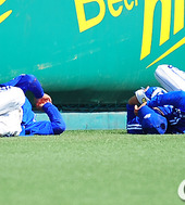 2011.03.23 14: 21김상수-강봉규,'파울볼 잡다 충돌'