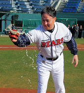 2011.03.23 09: 59막걸리 뿌리는 김경문, '마운드가 우승의 열쇠'