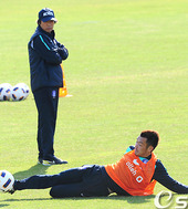 2011.03.23 17: 25흐믓한 표정으로 박주영의 훈련을 지켜보는 조광래 감독