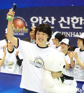 2011.04.01 19: 44우승 트로피 올리는 신한은행 강명숙