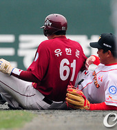 2011.04.02 15: 07정근우. '유한준, 그만 일어나'