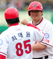 2011.04.02 15: 25미소 짓는 최희섭,'개막전 타격감 좋아요'