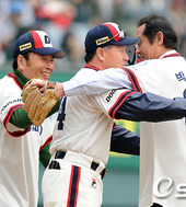 2011.04.02 14: 13김경문-박철순-김우열,'두산베어스 원년멤버들 한자리에 모였네'