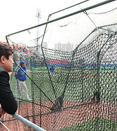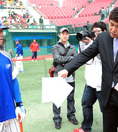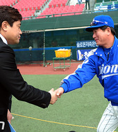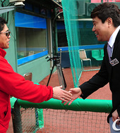 2011.04.02 11: 46양준혁,'류감독님! 오늘 해설하러 왔습니다'