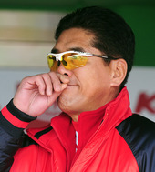 2011.04.03 13: 10긴장한 표정 조범현 감독,'오늘 반드시 이겨야 할텐데'