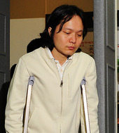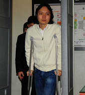 2011.04.04 11: 29신정환,'목발을 짚고, 힘겨운 표정으로'