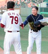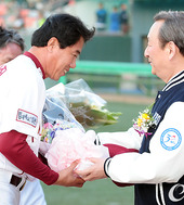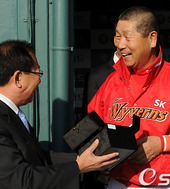 2011.04.05 18: 40유영구 총재,'김시진 감독! 넥센 홈 개막 축하해요'