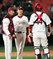 2011.04.05 20: 45정민태 코치,'김성태-허준 볼넷이 너무 많잖아'
