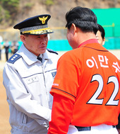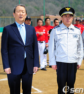 2011.04.08 14: 10유영구 총재-이성규 경찰청장,'퓨처스리그 경찰 야구단 홈 개막전 참석'