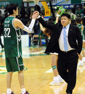 2011.04.08 21: 03환호하는 강동희,'3차전 승리 정말 짜릿하다'