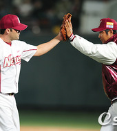 2011.04.08 20: 50정민태,'나이트 하이파이브 한번해야지'