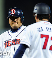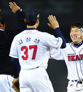2011.04.09 21: 23최준석-고창성,'끝내기 주인공 이라와봐'