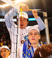 2011.04.09 16: 57'우승' 신치용 감독, '네트를 자르며'