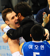 2011.04.09 17: 04포옹하는 가빈-신치용 감독, '우승이다'