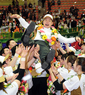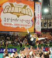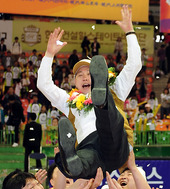 2011.04.09 18: 31헹가래 받는 황현주 감독,'우승은 언제나 즐거워'