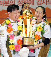 2011.04.09 18: 33황현주 감독-윤혜숙,'우승트로피 들고 싱글벙글'