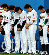 2011.04.12 18: 01지진 희생자를 위한 묵념을 하는 이승엽