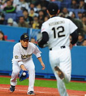 2011.04.12 18: 24첫 타점을 올리고 좋아하는 우치카와