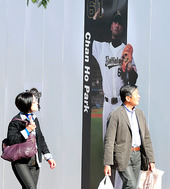 2011.04.13 17: 54교세라돔 가는 길에 붙어있는 이승엽의 프로필