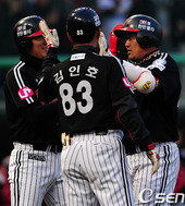 2011.04.19 18: 54조인성, '신바람, 선제 스리런 홈런'