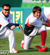 2011.04.20 16: 53이범호-최희섭,'몸 풀때도 즐겁게'