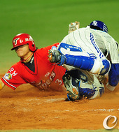 2011.04.20 21: 00김선빈,'모래바람을 일으키며 홈으로!'