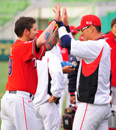 2011.04.21 16: 28트레비스-김상현,'파워풀한 하이파이브!'