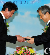2011.04.21 11: 49국세청 홍보대사 위촉패 받는 황정민