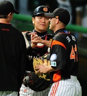 2011.05.19 21: 44장원준, '코리, 승리 지켜줘 고마워'