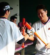 2011.05.19 17: 22박용택, '최희섭, 1군 복귀 축하해'