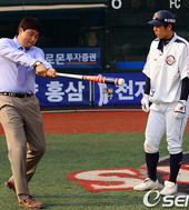 2011.06.08 17: 44양신 양준혁,'현수 덕분에 배트도 휘둘러보고'