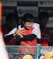 2011.06.08 21: 10아쉬운 표정 김동주,'정말 안 풀리네'