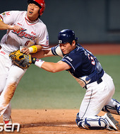 2011.06.08 20: 56깜짝 포수 변신 이성열,'홈태그도 잘해요'