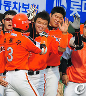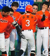 2011.06.11 17: 14홈런 축하하는 최진행,'거기가 여긴가?'