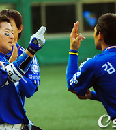 2011.06.12 19: 36최형우,'홈런포 날린 후 상수와 사인교환!'