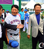2011.06.13 15: 39준공식서 만난 김준환-유남호,'해태 전성기가 그립구만'
